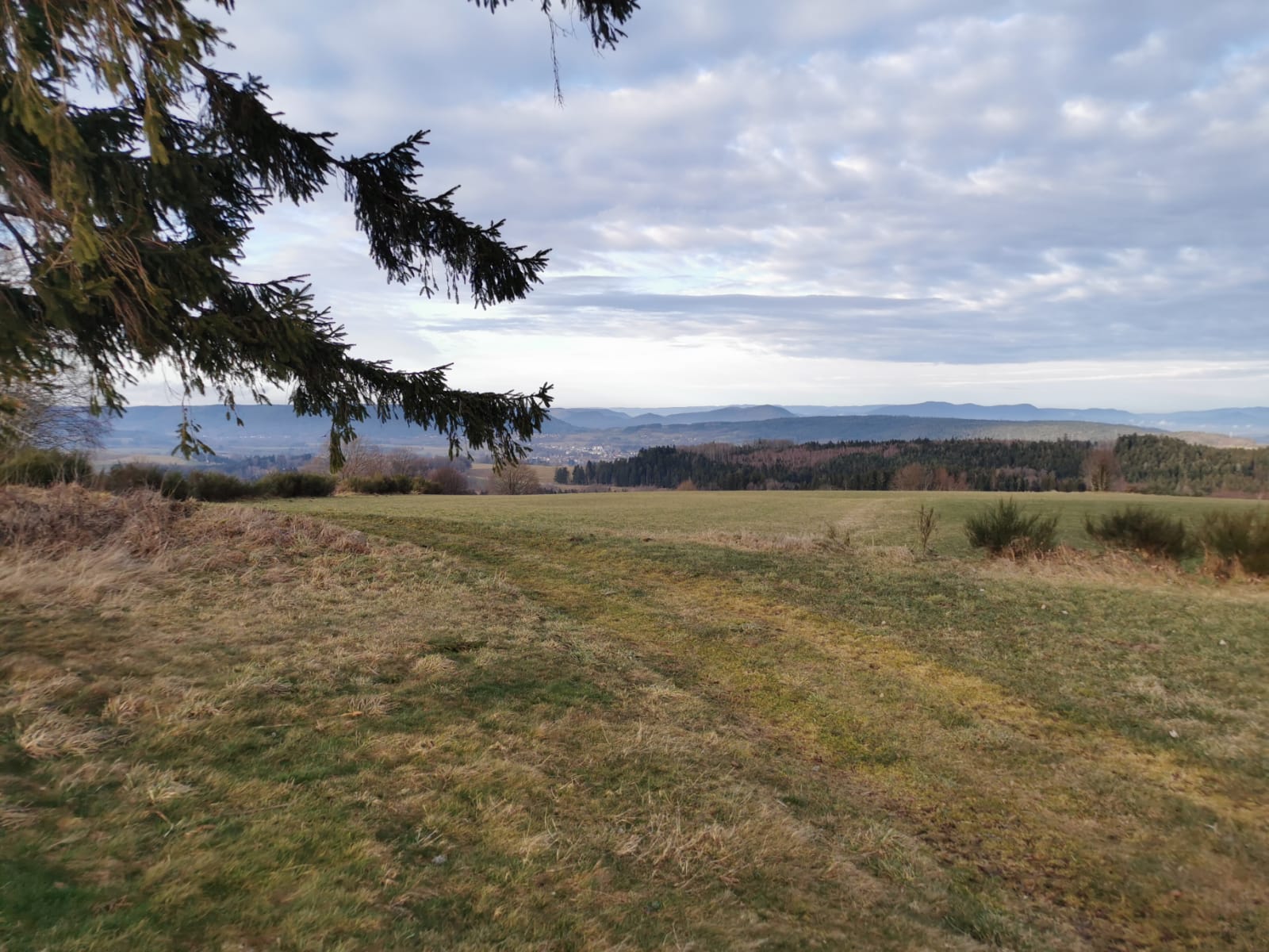 - Un plateau ouvert offrant une large vue sur la vallée et les collines environnantes.